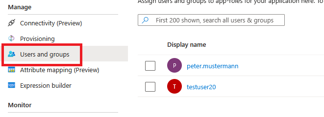 Im Menüpunkt Users and Groups kann definiert werden, welche Nutzer aus Entra ID nach Keycloak synchronisiert werden. So wird sichergestellt, dass nur relevante Benutzer provisioniert werden: