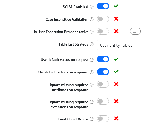 Über den Button edit gelangt man zu den SCIM-Konfigurationseinstellungen für diesen Realm. Für die Integration mit Entra ID haben wir folgende Einstellungen gemacht (weitestgehend die Default-Einstellungen):