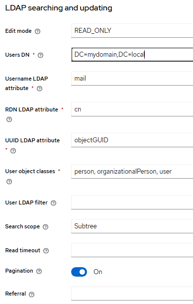- „Benutzername LDAP Attribut“ sollte in den meisten Fällen auf
